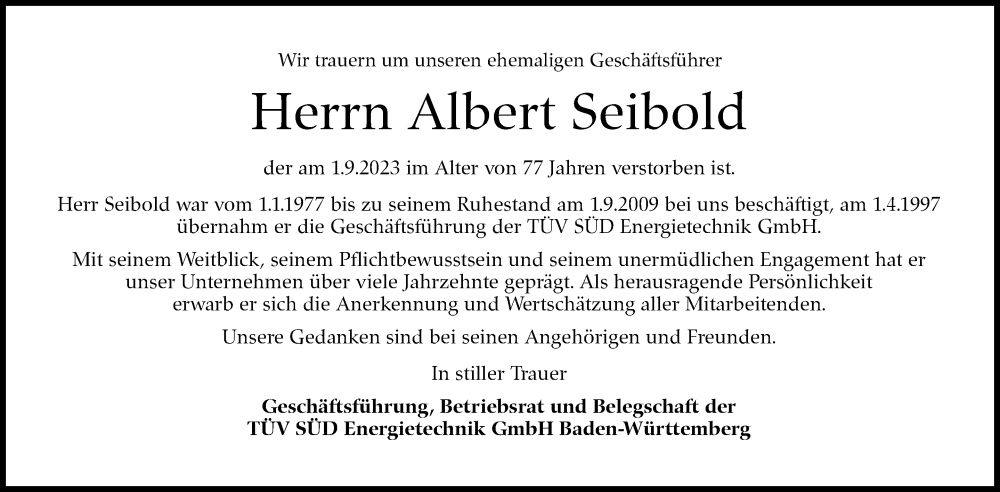 Hier finden Sie alle Traueranzeigen aus der Zeitung, die bisher für Albert Seibold erschienen sind. Weitere Traueranzeigen, die in der Zeitung erscheinen, werden hier ebenfalls aufgelistet