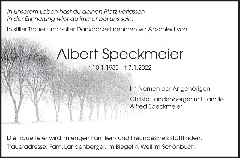 Hier finden Sie alle Traueranzeigen aus der Zeitung, die bisher für Albert Speckmeier erschienen sind. Weitere Traueranzeigen, die in der Zeitung erscheinen, werden hier ebenfalls aufgelistet