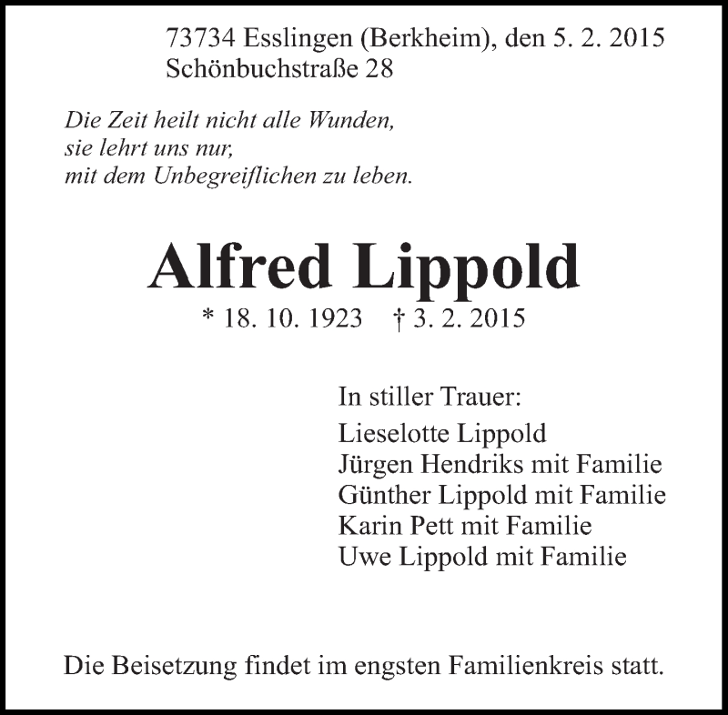 Hier finden Sie alle Traueranzeigen aus der Zeitung, die bisher für Alfred Lippold erschienen sind. Weitere Traueranzeigen, die in der Zeitung erscheinen, werden hier ebenfalls aufgelistet