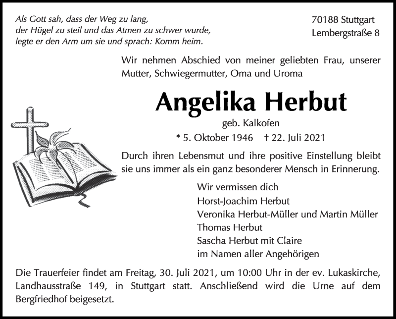 Hier finden Sie alle Traueranzeigen aus der Zeitung, die bisher für Angelika Herbut erschienen sind. Weitere Traueranzeigen, die in der Zeitung erscheinen, werden hier ebenfalls aufgelistet