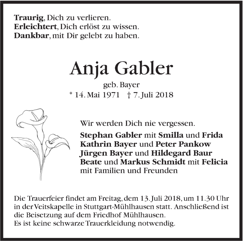 Hier finden Sie alle Traueranzeigen aus der Zeitung, die bisher für Anja Gabler erschienen sind. Weitere Traueranzeigen, die in der Zeitung erscheinen, werden hier ebenfalls aufgelistet