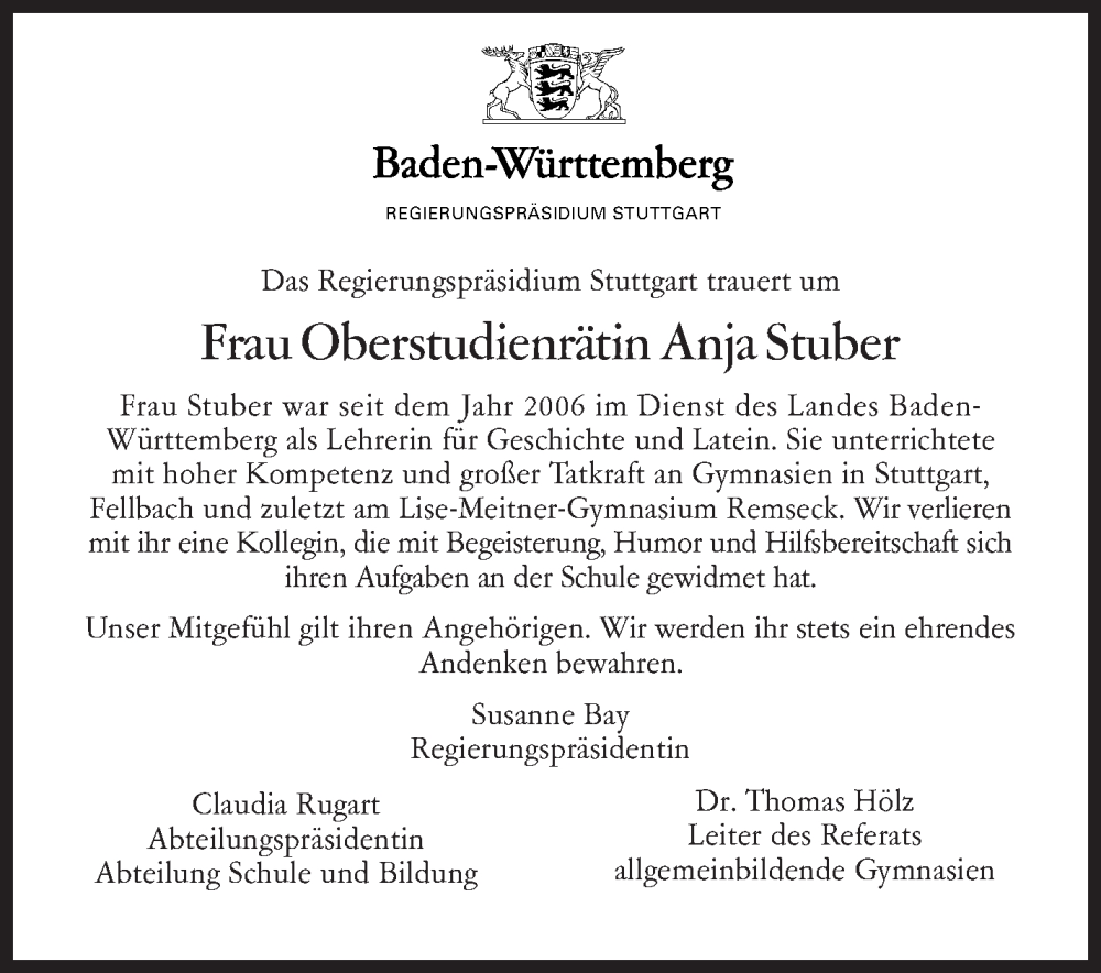Hier finden Sie alle Traueranzeigen aus der Zeitung, die bisher für Anja Stuber erschienen sind. Weitere Traueranzeigen, die in der Zeitung erscheinen, werden hier ebenfalls aufgelistet