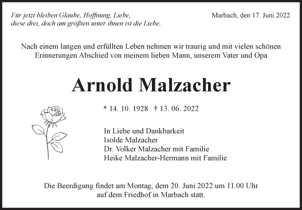 Hier finden Sie alle Traueranzeigen aus der Zeitung, die bisher für Arnold Malzacher erschienen sind. Weitere Traueranzeigen, die in der Zeitung erscheinen, werden hier ebenfalls aufgelistet