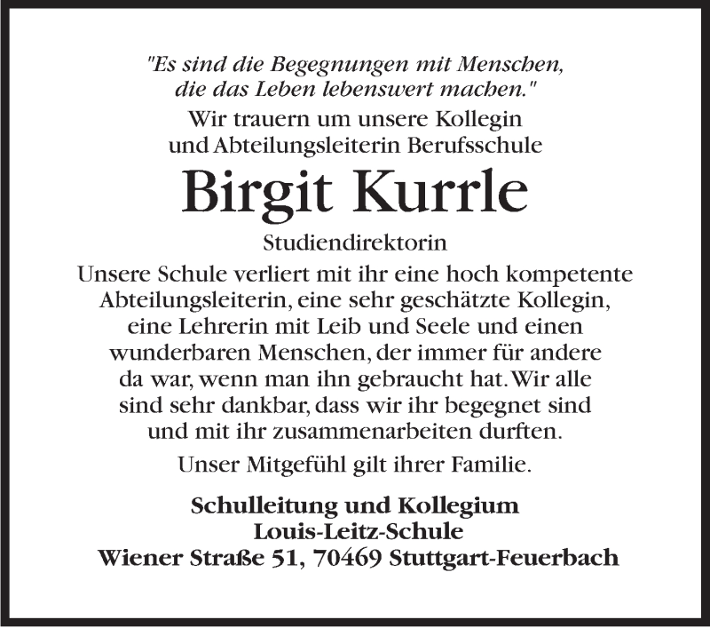 Hier finden Sie alle Traueranzeigen aus der Zeitung, die bisher für Birgit Kurrle erschienen sind. Weitere Traueranzeigen, die in der Zeitung erscheinen, werden hier ebenfalls aufgelistet