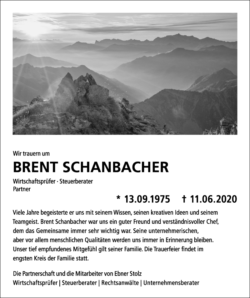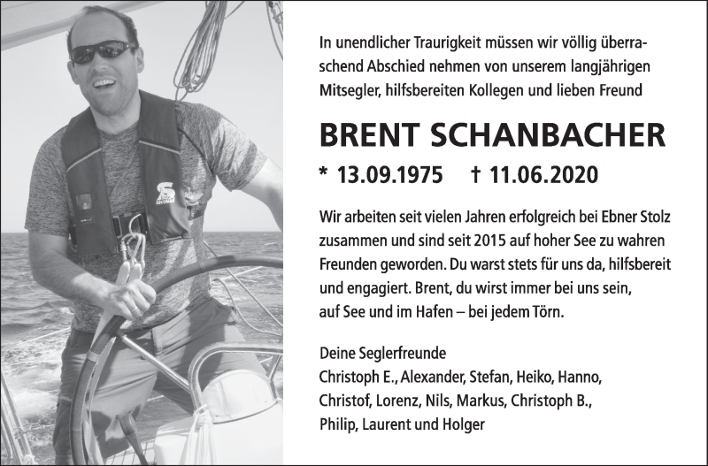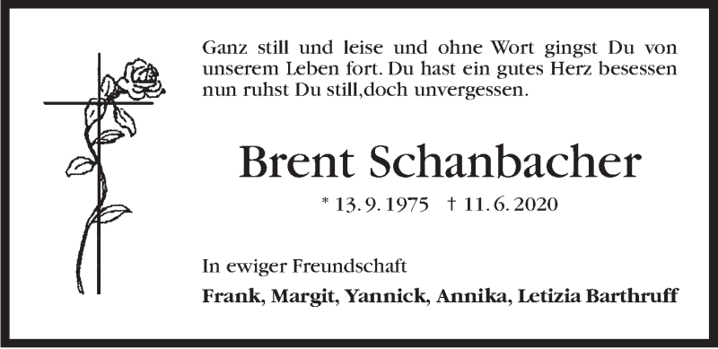 Hier finden Sie alle Traueranzeigen aus der Zeitung, die bisher für Brent Schanbacher erschienen sind. Weitere Traueranzeigen, die in der Zeitung erscheinen, werden hier ebenfalls aufgelistet