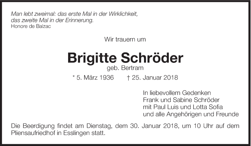 Hier finden Sie alle Traueranzeigen aus der Zeitung, die bisher für Brigitte Schröder erschienen sind. Weitere Traueranzeigen, die in der Zeitung erscheinen, werden hier ebenfalls aufgelistet