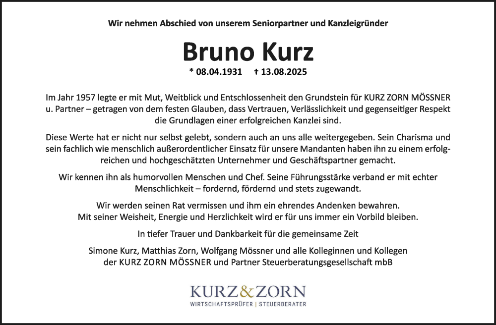 Hier finden Sie alle Traueranzeigen aus der Zeitung, die bisher für Bruno Kurz erschienen sind. Weitere Traueranzeigen, die in der Zeitung erscheinen, werden hier ebenfalls aufgelistet