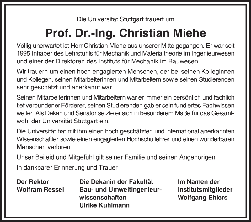 Hier finden Sie alle Traueranzeigen aus der Zeitung, die bisher für Christian Miehe erschienen sind. Weitere Traueranzeigen, die in der Zeitung erscheinen, werden hier ebenfalls aufgelistet