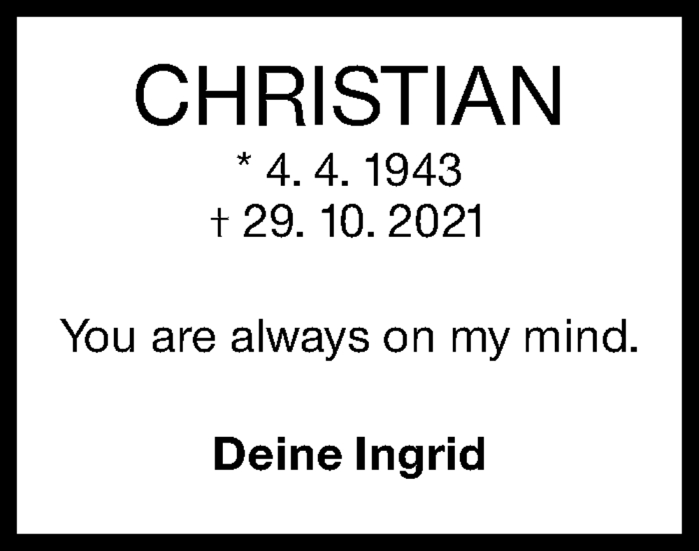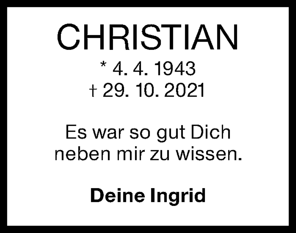 Hier finden Sie alle Traueranzeigen aus der Zeitung, die bisher für Christian Rassaerts erschienen sind. Weitere Traueranzeigen, die in der Zeitung erscheinen, werden hier ebenfalls aufgelistet