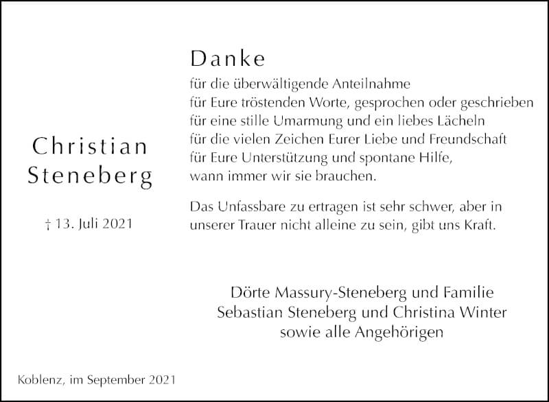 Hier finden Sie alle Traueranzeigen aus der Zeitung, die bisher für Christian Steneberg erschienen sind. Weitere Traueranzeigen, die in der Zeitung erscheinen, werden hier ebenfalls aufgelistet
