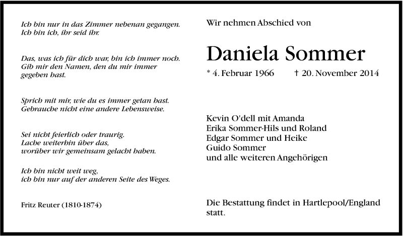 Hier finden Sie alle Traueranzeigen aus der Zeitung, die bisher für Daniela Sommer erschienen sind. Weitere Traueranzeigen, die in der Zeitung erscheinen, werden hier ebenfalls aufgelistet