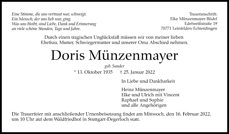 Hier finden Sie alle Traueranzeigen aus der Zeitung, die bisher für Doris Münzenmayer erschienen sind. Weitere Traueranzeigen, die in der Zeitung erscheinen, werden hier ebenfalls aufgelistet