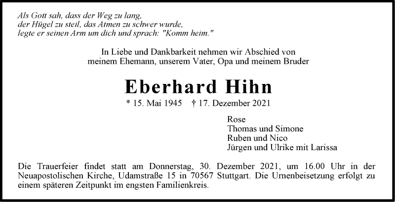 Hier finden Sie alle Traueranzeigen aus der Zeitung, die bisher für Eberhard Hihn erschienen sind. Weitere Traueranzeigen, die in der Zeitung erscheinen, werden hier ebenfalls aufgelistet