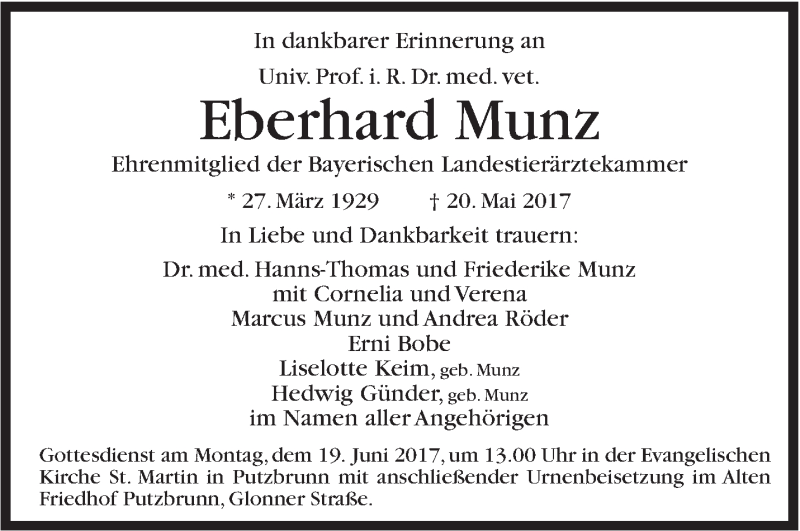 Hier finden Sie alle Traueranzeigen aus der Zeitung, die bisher für Eberhard Munz erschienen sind. Weitere Traueranzeigen, die in der Zeitung erscheinen, werden hier ebenfalls aufgelistet