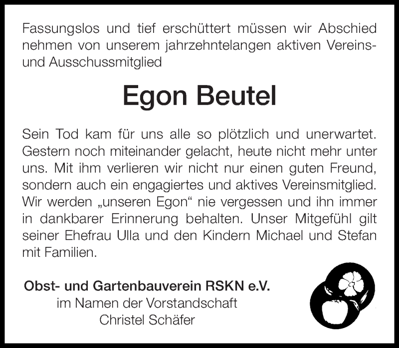 Hier finden Sie alle Traueranzeigen aus der Zeitung, die bisher für Egon Beutel erschienen sind. Weitere Traueranzeigen, die in der Zeitung erscheinen, werden hier ebenfalls aufgelistet