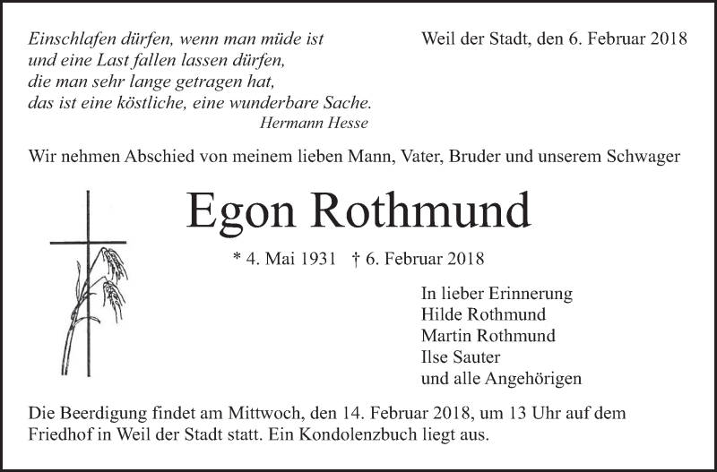 Hier finden Sie alle Traueranzeigen aus der Zeitung, die bisher für Egon Rothmund erschienen sind. Weitere Traueranzeigen, die in der Zeitung erscheinen, werden hier ebenfalls aufgelistet