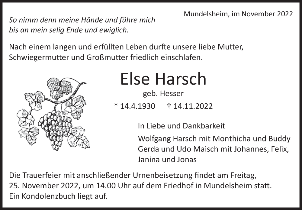 Hier finden Sie alle Traueranzeigen aus der Zeitung, die bisher für Else Harsch erschienen sind. Weitere Traueranzeigen, die in der Zeitung erscheinen, werden hier ebenfalls aufgelistet