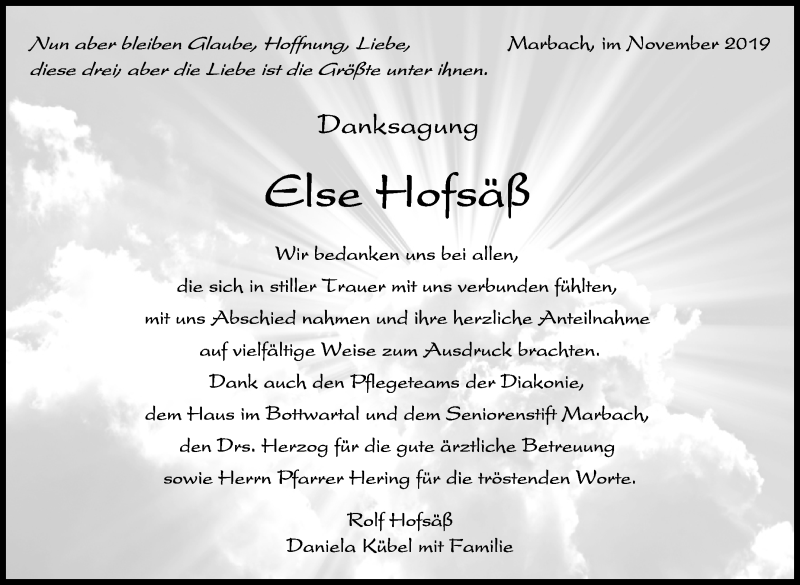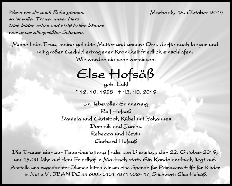 Hier finden Sie alle Traueranzeigen aus der Zeitung, die bisher für Else Hofsäß erschienen sind. Weitere Traueranzeigen, die in der Zeitung erscheinen, werden hier ebenfalls aufgelistet