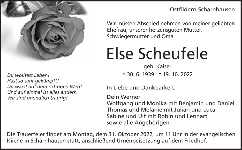 Hier finden Sie alle Traueranzeigen aus der Zeitung, die bisher für Else Scheufele erschienen sind. Weitere Traueranzeigen, die in der Zeitung erscheinen, werden hier ebenfalls aufgelistet