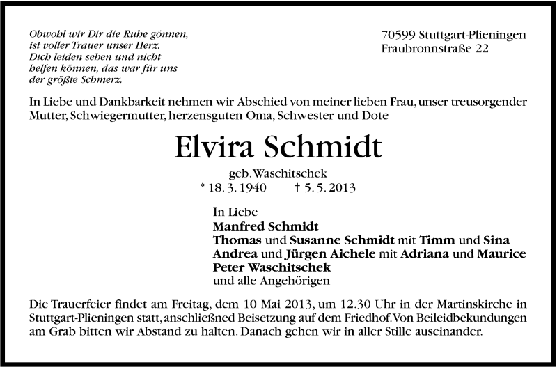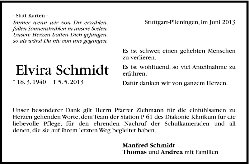 Hier finden Sie alle Traueranzeigen aus der Zeitung, die bisher für Elvira Schmidt erschienen sind. Weitere Traueranzeigen, die in der Zeitung erscheinen, werden hier ebenfalls aufgelistet