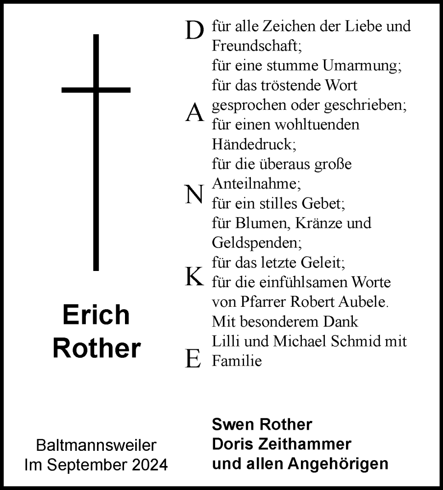 Hier finden Sie alle Traueranzeigen aus der Zeitung, die bisher für Erich Rother erschienen sind. Weitere Traueranzeigen, die in der Zeitung erscheinen, werden hier ebenfalls aufgelistet