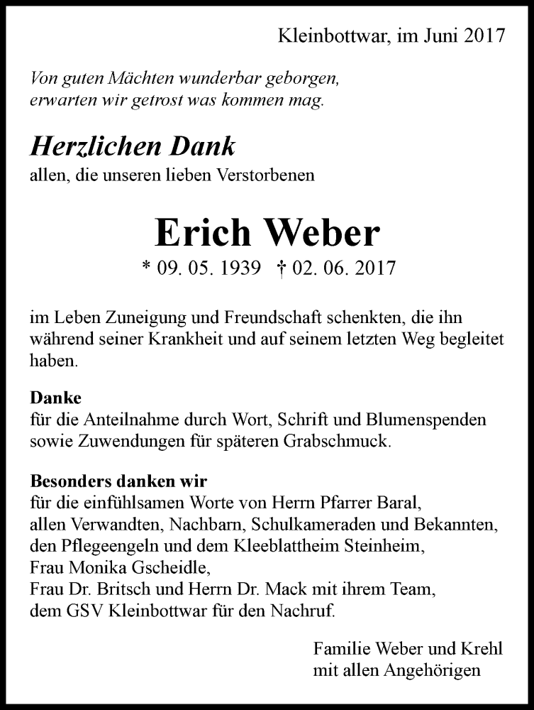 Hier finden Sie alle Traueranzeigen aus der Zeitung, die bisher für Erich Weber erschienen sind. Weitere Traueranzeigen, die in der Zeitung erscheinen, werden hier ebenfalls aufgelistet