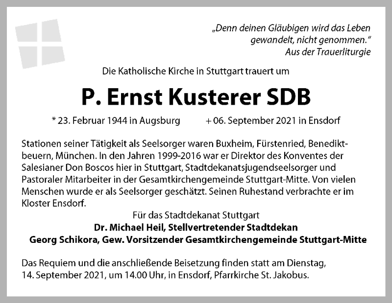 Hier finden Sie alle Traueranzeigen aus der Zeitung, die bisher für Ernst Kusterer erschienen sind. Weitere Traueranzeigen, die in der Zeitung erscheinen, werden hier ebenfalls aufgelistet