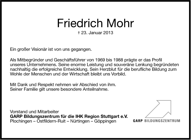 Hier finden Sie alle Traueranzeigen aus der Zeitung, die bisher für Friedrich Mohr erschienen sind. Weitere Traueranzeigen, die in der Zeitung erscheinen, werden hier ebenfalls aufgelistet