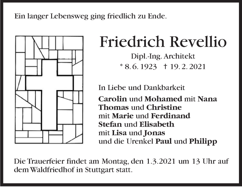 Hier finden Sie alle Traueranzeigen aus der Zeitung, die bisher für Friedrich Revellio erschienen sind. Weitere Traueranzeigen, die in der Zeitung erscheinen, werden hier ebenfalls aufgelistet