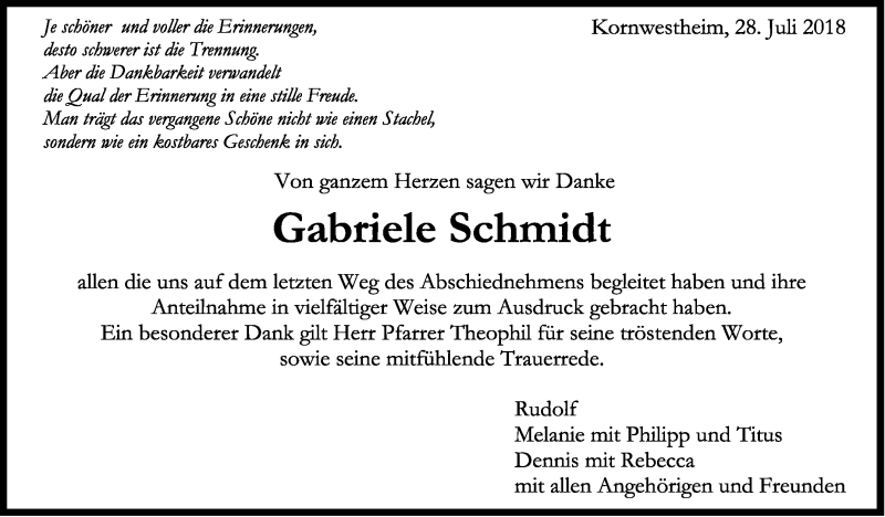 Hier finden Sie alle Traueranzeigen aus der Zeitung, die bisher für Gabriele Schmidt erschienen sind. Weitere Traueranzeigen, die in der Zeitung erscheinen, werden hier ebenfalls aufgelistet
