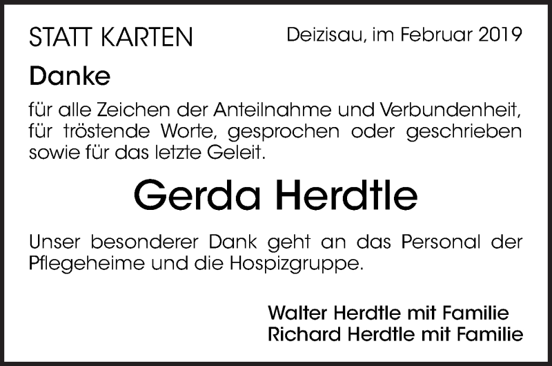 Hier finden Sie alle Traueranzeigen aus der Zeitung, die bisher für Gerda Herdtle erschienen sind. Weitere Traueranzeigen, die in der Zeitung erscheinen, werden hier ebenfalls aufgelistet