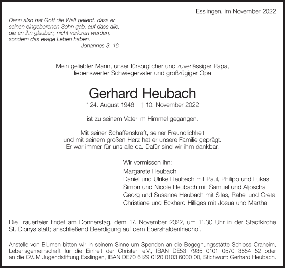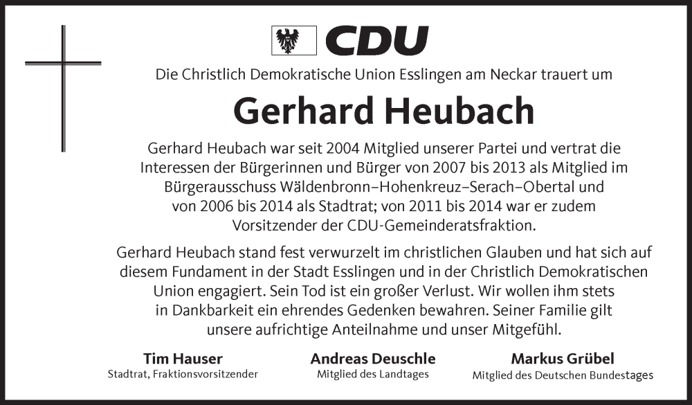 Hier finden Sie alle Traueranzeigen aus der Zeitung, die bisher für Gerhard Heubach erschienen sind. Weitere Traueranzeigen, die in der Zeitung erscheinen, werden hier ebenfalls aufgelistet
