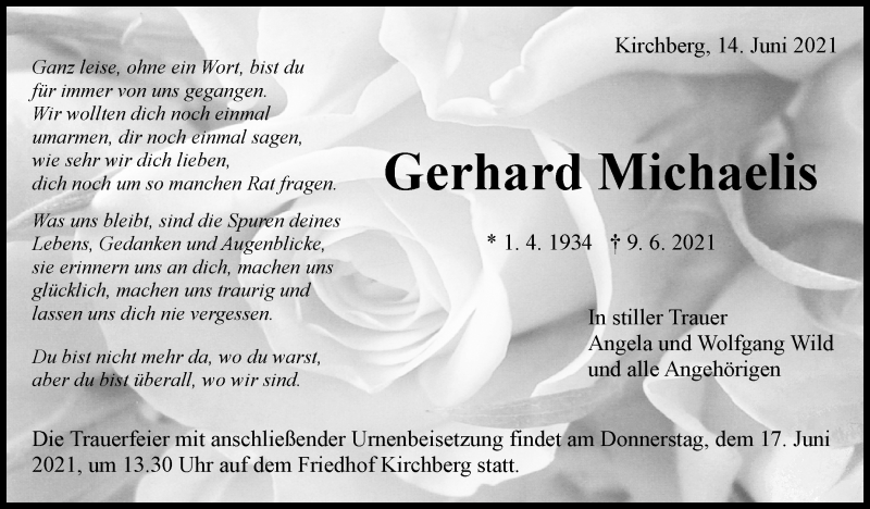 Hier finden Sie alle Traueranzeigen aus der Zeitung, die bisher für Gerhard Michaelis erschienen sind. Weitere Traueranzeigen, die in der Zeitung erscheinen, werden hier ebenfalls aufgelistet