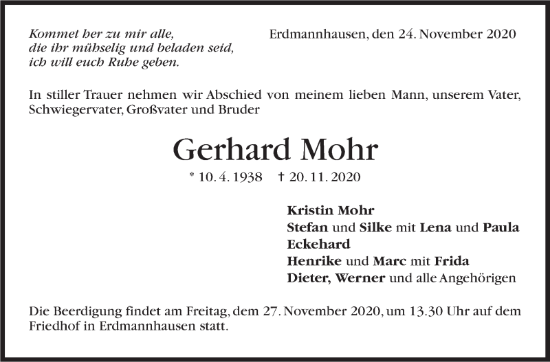 Hier finden Sie alle Traueranzeigen aus der Zeitung, die bisher für Gerhard Mohr erschienen sind. Weitere Traueranzeigen, die in der Zeitung erscheinen, werden hier ebenfalls aufgelistet