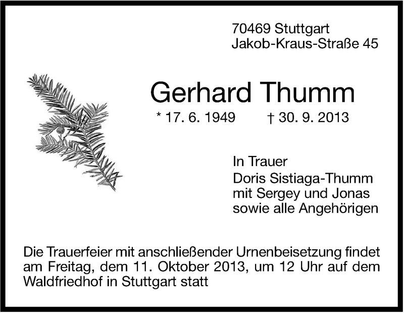Hier finden Sie alle Traueranzeigen aus der Zeitung, die bisher für Gerhard Thumm erschienen sind. Weitere Traueranzeigen, die in der Zeitung erscheinen, werden hier ebenfalls aufgelistet