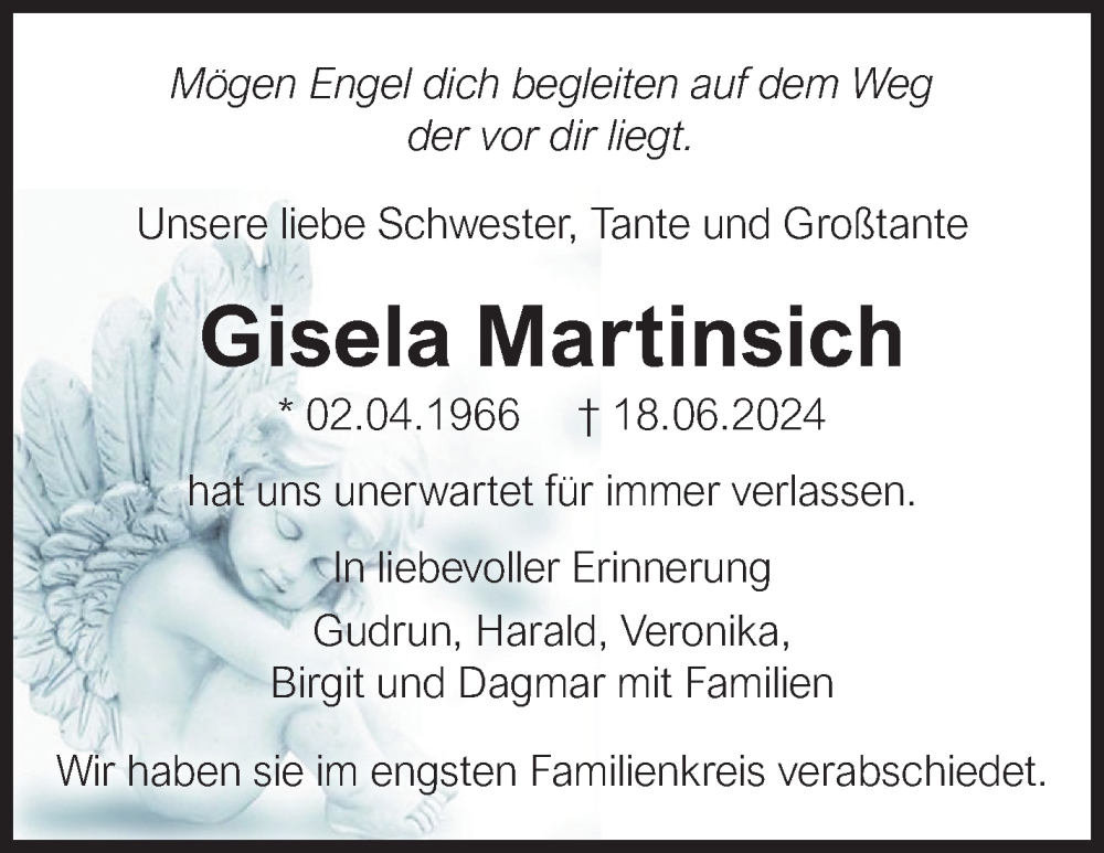 Hier finden Sie alle Traueranzeigen aus der Zeitung, die bisher für Gisela Martinsich erschienen sind. Weitere Traueranzeigen, die in der Zeitung erscheinen, werden hier ebenfalls aufgelistet