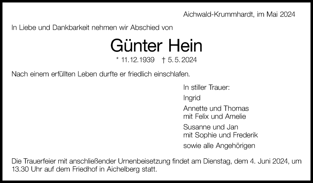 Hier finden Sie alle Traueranzeigen aus der Zeitung, die bisher für Günter Hein erschienen sind. Weitere Traueranzeigen, die in der Zeitung erscheinen, werden hier ebenfalls aufgelistet