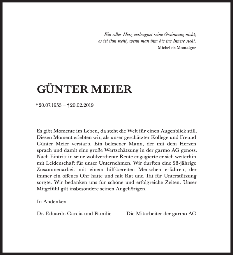 Hier finden Sie alle Traueranzeigen aus der Zeitung, die bisher für Günter Meier erschienen sind. Weitere Traueranzeigen, die in der Zeitung erscheinen, werden hier ebenfalls aufgelistet