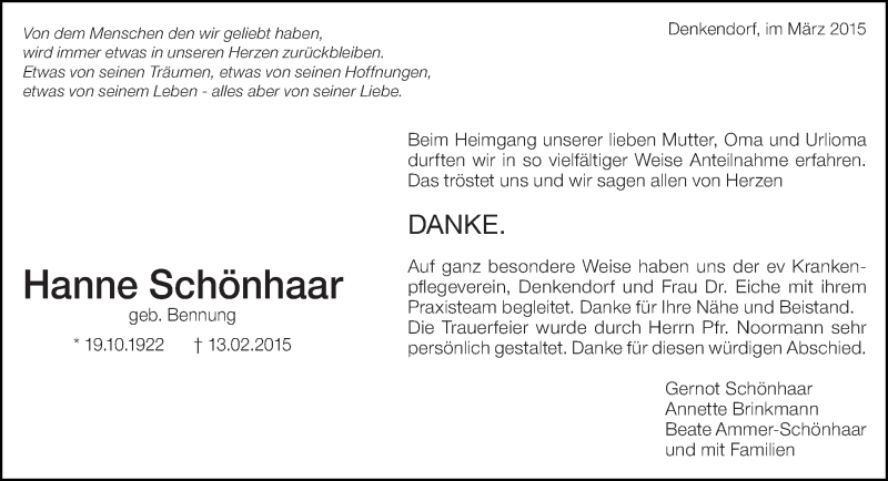 Hier finden Sie alle Traueranzeigen aus der Zeitung, die bisher für Hanne Schönhaar erschienen sind. Weitere Traueranzeigen, die in der Zeitung erscheinen, werden hier ebenfalls aufgelistet