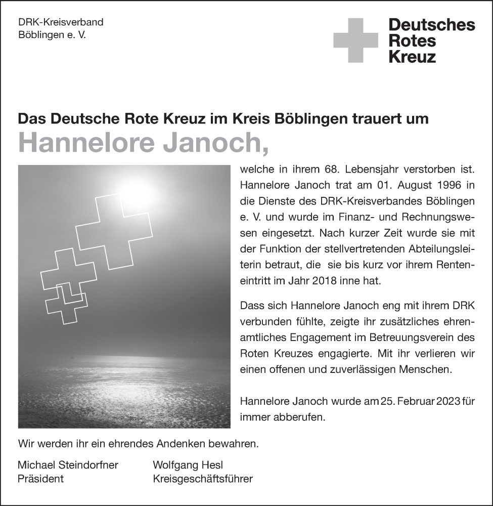 Hier finden Sie alle Traueranzeigen aus der Zeitung, die bisher für Hannelore Janoch erschienen sind. Weitere Traueranzeigen, die in der Zeitung erscheinen, werden hier ebenfalls aufgelistet