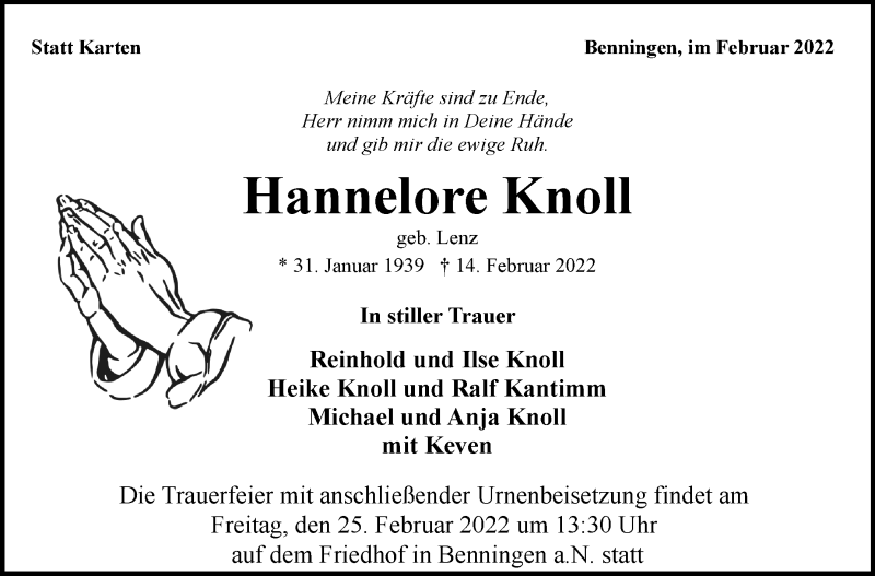 Hier finden Sie alle Traueranzeigen aus der Zeitung, die bisher für Hannelore Knoll erschienen sind. Weitere Traueranzeigen, die in der Zeitung erscheinen, werden hier ebenfalls aufgelistet