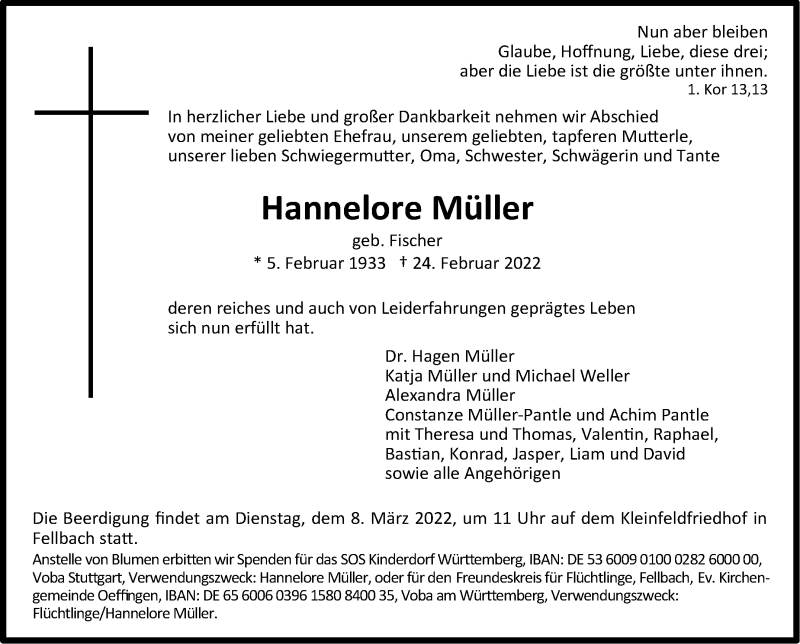 Hier finden Sie alle Traueranzeigen aus der Zeitung, die bisher für Hannelore Müller erschienen sind. Weitere Traueranzeigen, die in der Zeitung erscheinen, werden hier ebenfalls aufgelistet
