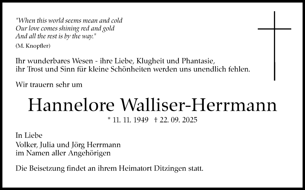 Hier finden Sie alle Traueranzeigen aus der Zeitung, die bisher für Hannelore Walliser-Herrmann erschienen sind. Weitere Traueranzeigen, die in der Zeitung erscheinen, werden hier ebenfalls aufgelistet