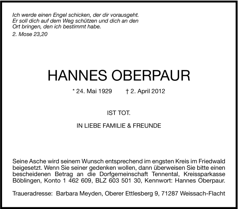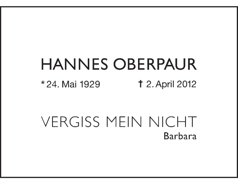 Hier finden Sie alle Traueranzeigen aus der Zeitung, die bisher für Hannes Oberpaur erschienen sind. Weitere Traueranzeigen, die in der Zeitung erscheinen, werden hier ebenfalls aufgelistet