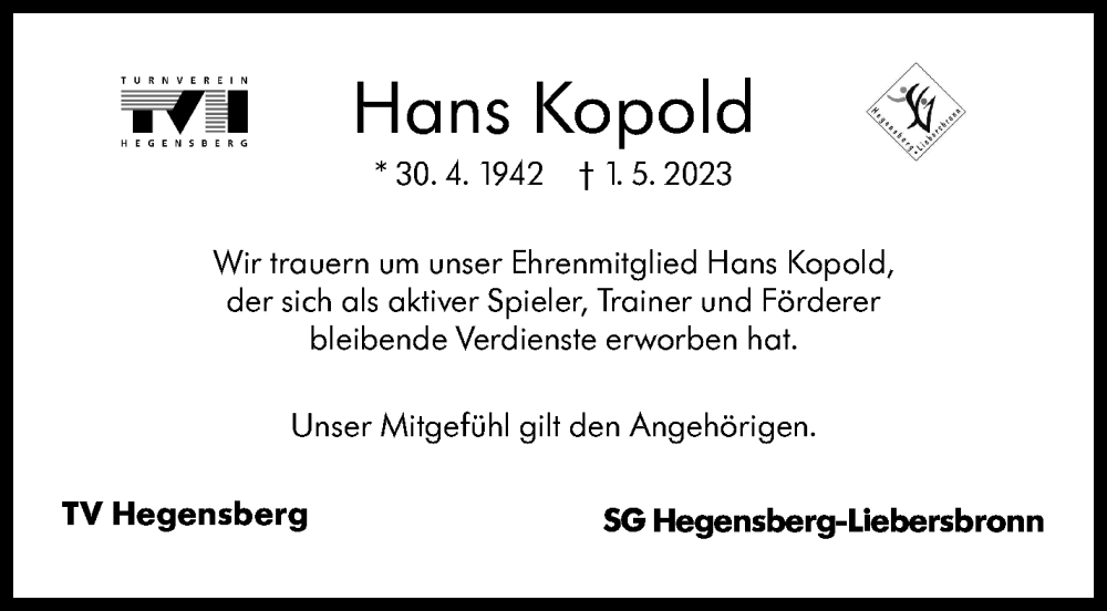 Hier finden Sie alle Traueranzeigen aus der Zeitung, die bisher für Hans Kopold erschienen sind. Weitere Traueranzeigen, die in der Zeitung erscheinen, werden hier ebenfalls aufgelistet