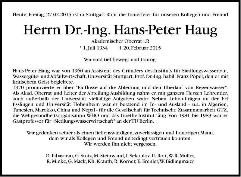 Hier finden Sie alle Traueranzeigen aus der Zeitung, die bisher für Hans-Peter Haug erschienen sind. Weitere Traueranzeigen, die in der Zeitung erscheinen, werden hier ebenfalls aufgelistet