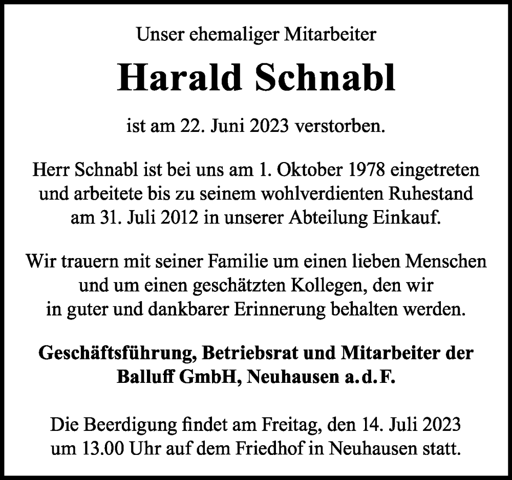 Hier finden Sie alle Traueranzeigen aus der Zeitung, die bisher für Harald Schnabl erschienen sind. Weitere Traueranzeigen, die in der Zeitung erscheinen, werden hier ebenfalls aufgelistet