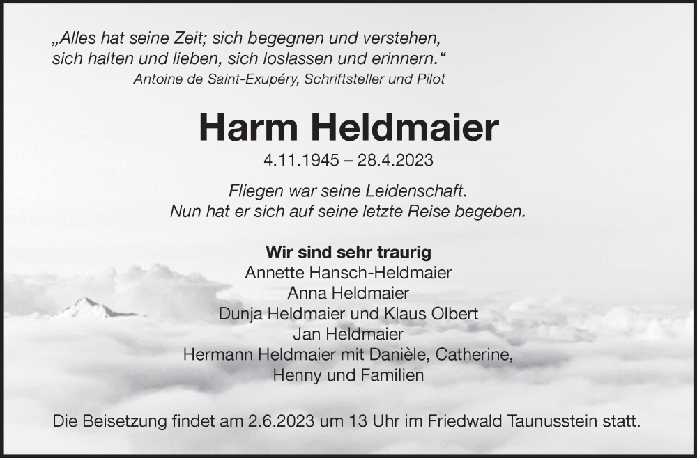 Hier finden Sie alle Traueranzeigen aus der Zeitung, die bisher für Harm Heldmaier erschienen sind. Weitere Traueranzeigen, die in der Zeitung erscheinen, werden hier ebenfalls aufgelistet