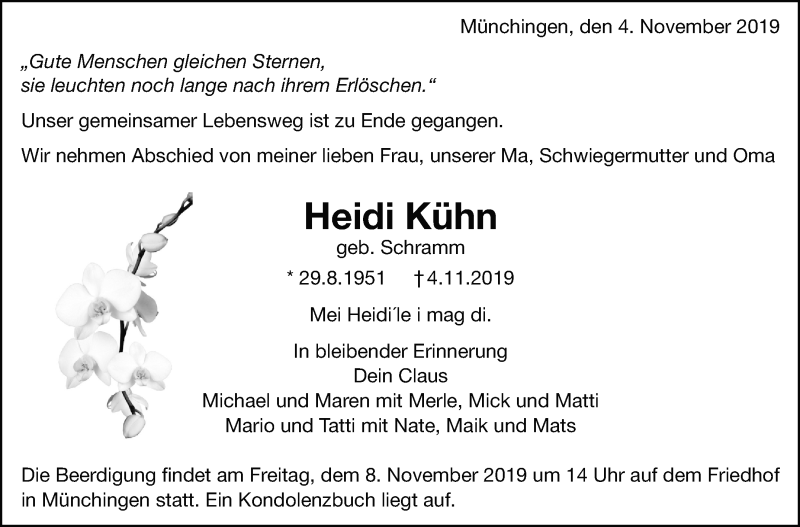 Hier finden Sie alle Traueranzeigen aus der Zeitung, die bisher für Heidi Kühn erschienen sind. Weitere Traueranzeigen, die in der Zeitung erscheinen, werden hier ebenfalls aufgelistet