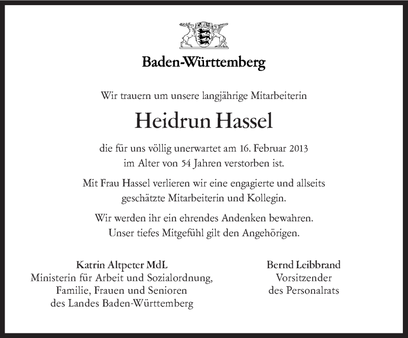 Hier finden Sie alle Traueranzeigen aus der Zeitung, die bisher für Heidrun Hassel erschienen sind. Weitere Traueranzeigen, die in der Zeitung erscheinen, werden hier ebenfalls aufgelistet